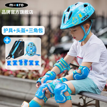 M-cro Maigu Children's Helmet Protector Set Skateboard Skating Shoes Roller Skating Balance Bicycle Protector Baby Knee pads Safety Helmet Blue FLY Helmet+Protector+Triangle Bag M/(approximately 50-90 pounds)
